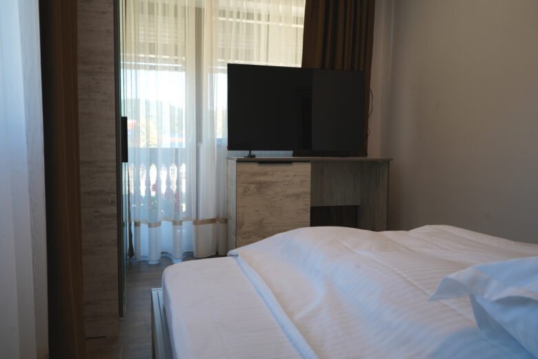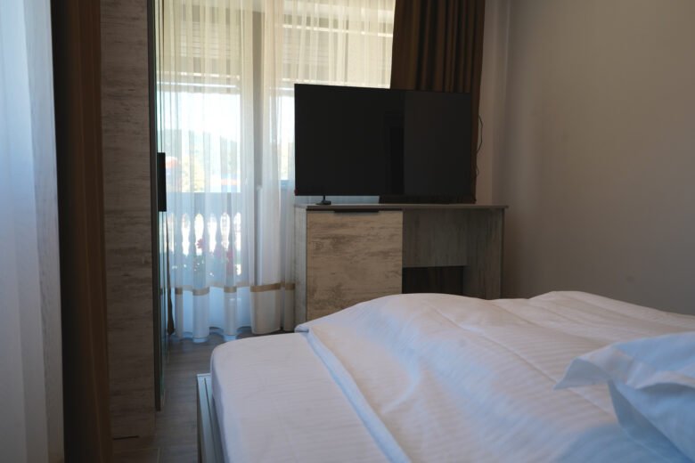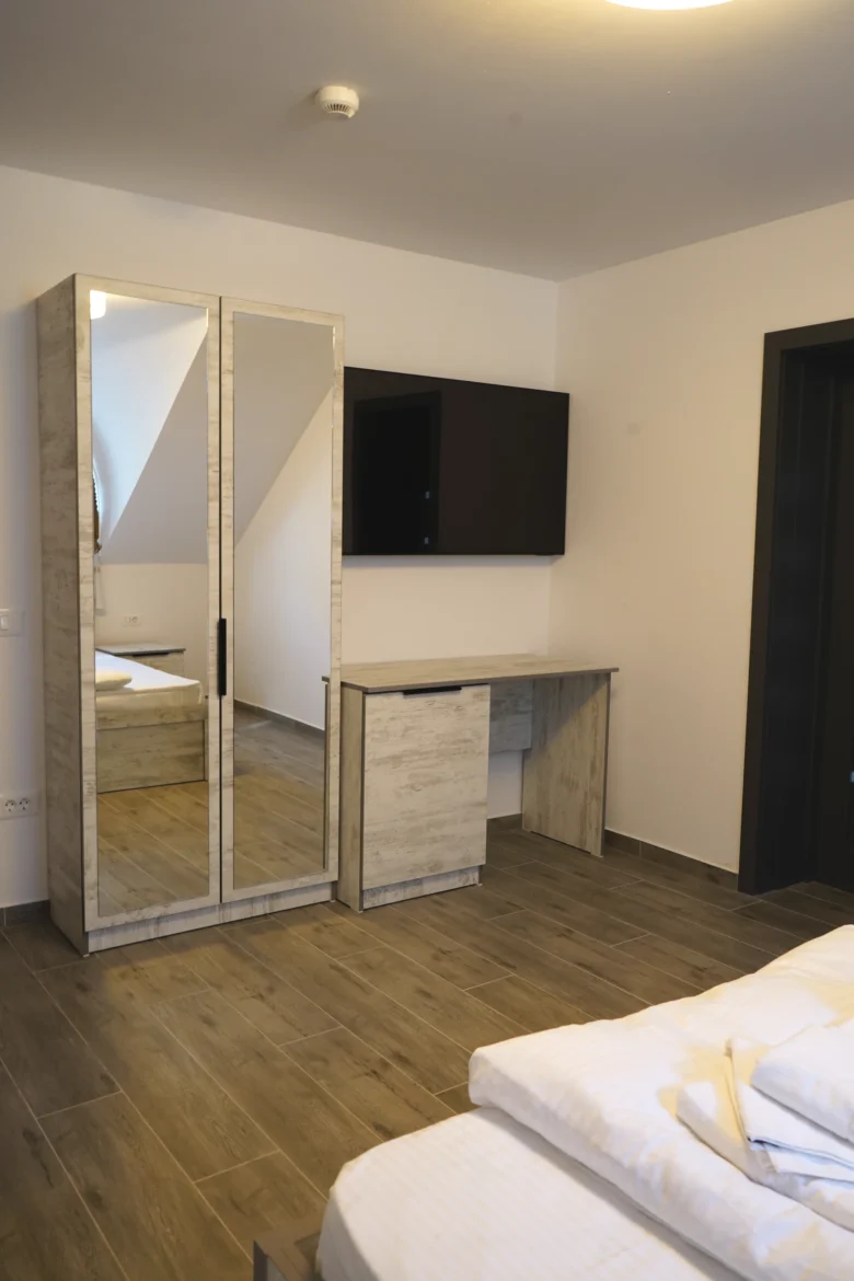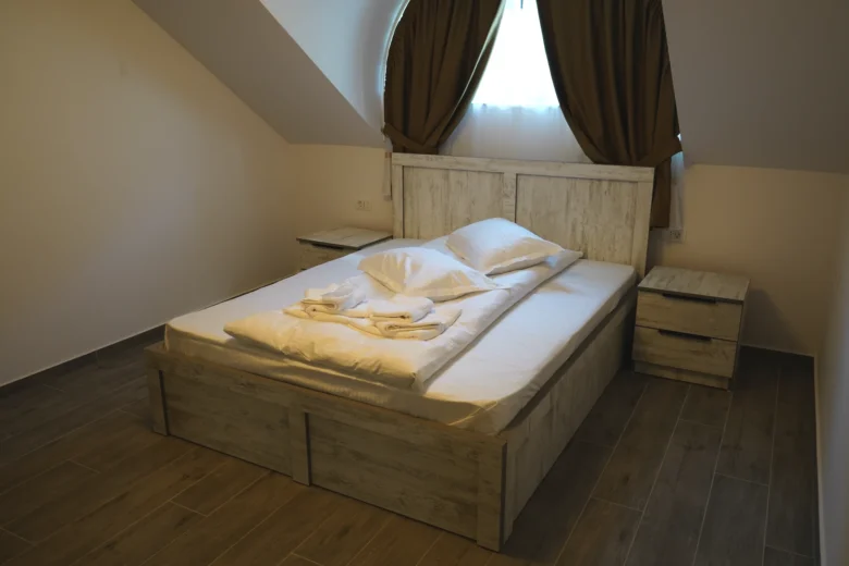 Camerele duble de la Pensiunea Sâhla oferă un refugiu liniștit pentru cupluri sau călători solo în Câmpulung Moldovenesc. Fiecare cameră dublă include pat matrimonial, frigider mic, cafetieră, TV prin cablu și baie privată cu duș, toate însoțite de vederi la munți. Situată aproape de Pârtia Rarău (5-10 km) și Masivul Rarău (15 km), asigură acces rapid la drumeții și schi. Cu WiFi gratuit și lenjerie inclusă, aceste camere garantează un sejur plăcut în Bucovina, reflectând ratingul 9.9 al pensiunii Bucovina pe Booking.com.
