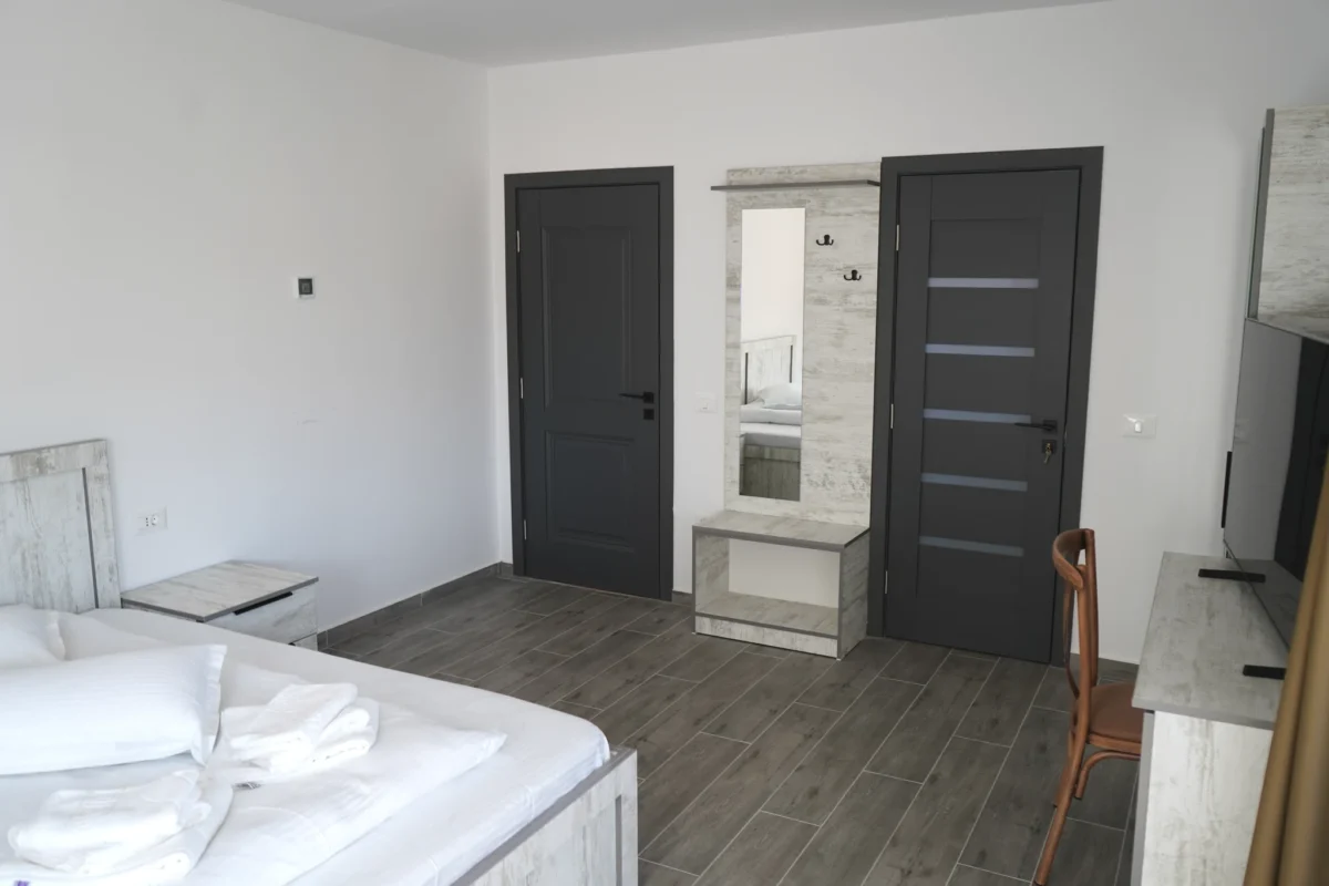 Descoperiți Studio cu Pat King de 20 m², la etajul 1, cu balcon larg și vedere la munți. Ideal pentru 3 oaspeți, include pat king, fotoliu extensibil, WiFi gratuit, TV cu ecran plat și bucătărie comună. Dotat cu mașină de spălat vase și spălătorie comună, oferă relaxare. Rezervați acum pentru cazare Bucovina premium!